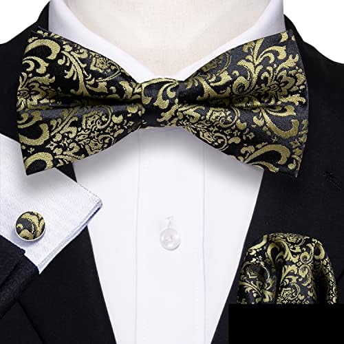 Barry.Wang Fliegen für Herren,Krawattenset mit Paisley-Blumen Hochzeit Party Formell Taschentuch Manschettenknöpfe