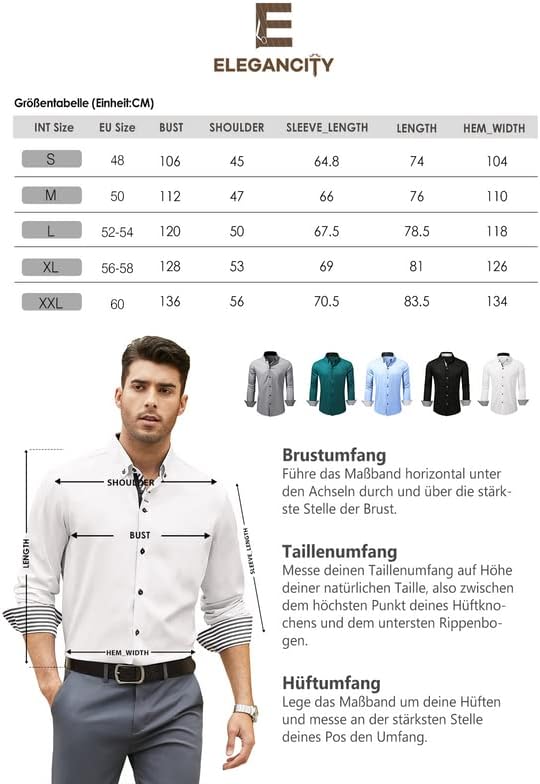 Elegancity Herren Hemd Langarm Businesshemden Stretch Bügelfrei Freizeit Oberhemd Männer Regular Fit Business Hemd Formelle Anzughemd S-XXL