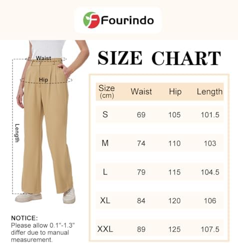 Fourindo Hosen Damen Weite Bein Palazzo Hose Causal Locker High Waist Hose Stoffhose mit Tasche Elegant Stretch Anzughose Freizeithose