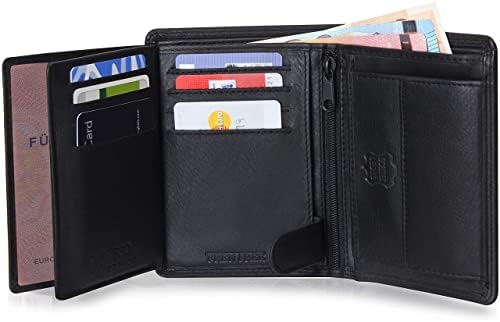 Frentree® Herren Geldbörse aus Nappa Leder mit RFID Schutz, 15 Kartenfächer, Hochformat Portemonnaie, Schwarz