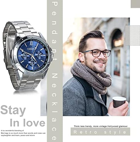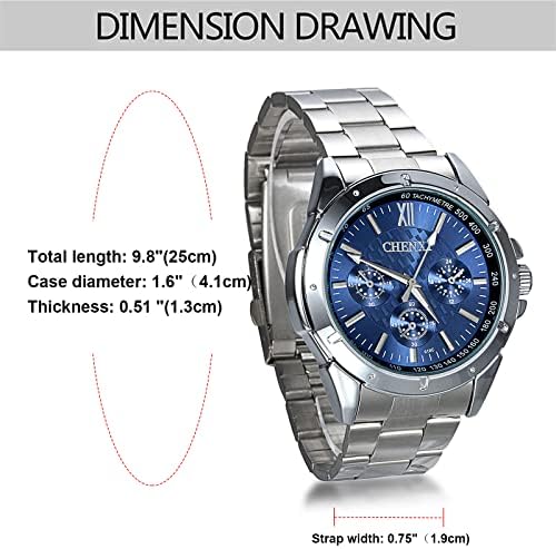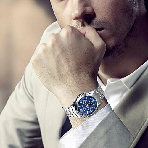 JewelryWe Herren Armbanduhr, Business Casual Analog Quarz Uhr mit Edelstahl Armband, Blau Schwarz Weiss Zifferblatt