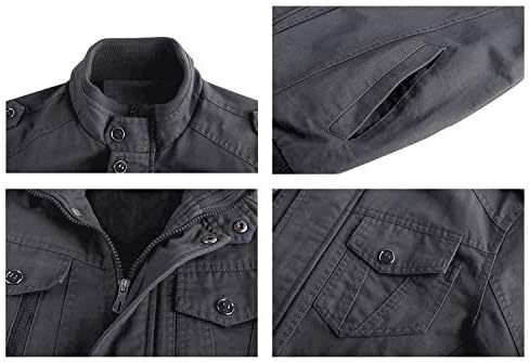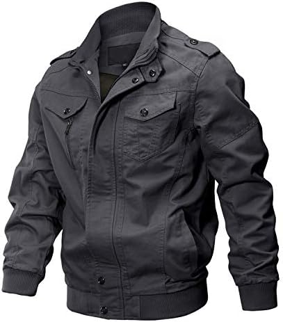 KEFITEVD Herren Übergangsjacke Militär Jacke Stehkragen Fliegerjacke Baumwolle Blouson Bomber Jacke Multi Taschen Armeejacke US Feldjacke