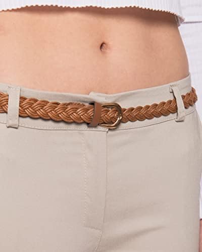 Kendindza Chino Damen Hose Stretch mit Gürtel Stoffhose Damen elegant lang