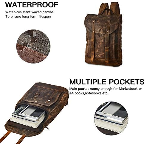 Mens Gewachste Vintage-Leinwand Rucksäcke 15.6″ Laptop Rucksack