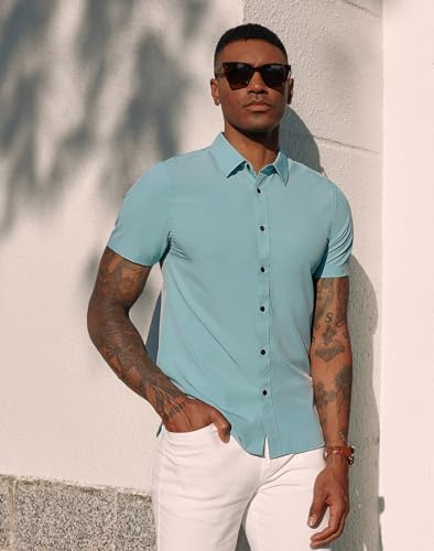PJ PAUL JONES Herren Hemd Kurzarm Freizeithemd Regular Fit Bügelfrei Businesshemd Sommerhemd