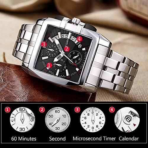Multifunktionsuhren mit Kalendertag und Chronographenfunktion, drei separate Zifferblätter zur Anzeige von Stunden, Minuten und Sekunden. Klassische Herrenuhr, einfaches und großzügiges analoges Display, elegant und zeitlos, robust und zuverlässig. 30 Meter wasserdicht, Sie können es verwenden, ohne sich Gedanken über Wassertropfen beim Waschen Ihres Gesichts oder etwas Regen machen zu müssen. Darüber hinaus haben wir bei der Gestaltung des Riemens ergonomische Prinzipien und exquisite Handwerkskunst kombiniert, um ein reibungsloses visuelles und tragbares Erlebnis zu erzielen. Alle diese Eigenschaften bieten ein gutes Trageerlebnis. Jeder erfolgreiche Mann verdient eine so faszinierende Armbanduhr.