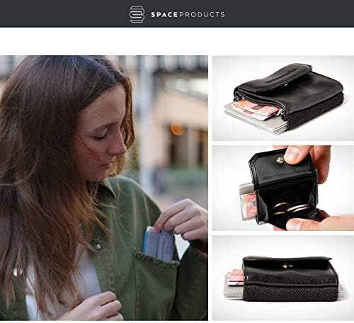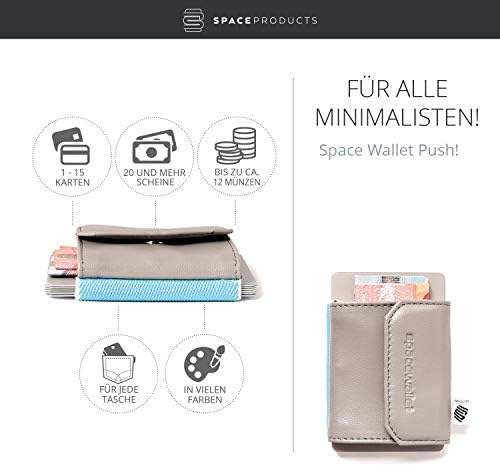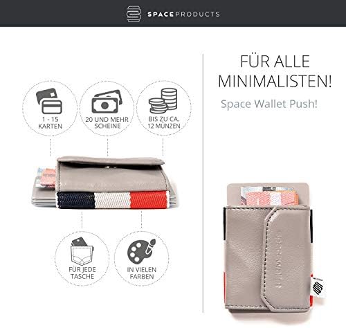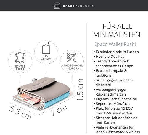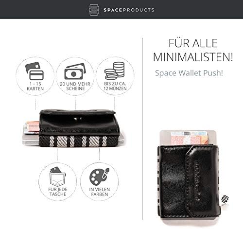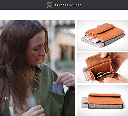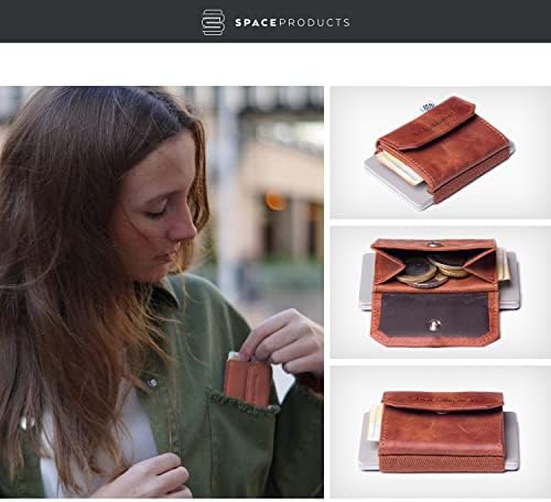 Space Wallet Slim Wallet mit Münzfach I Büffelleder Geldbörse Herren klein – Mini Geldbeutel Damen I 15 Karten + Geldscheine + Münzen I Push Antique