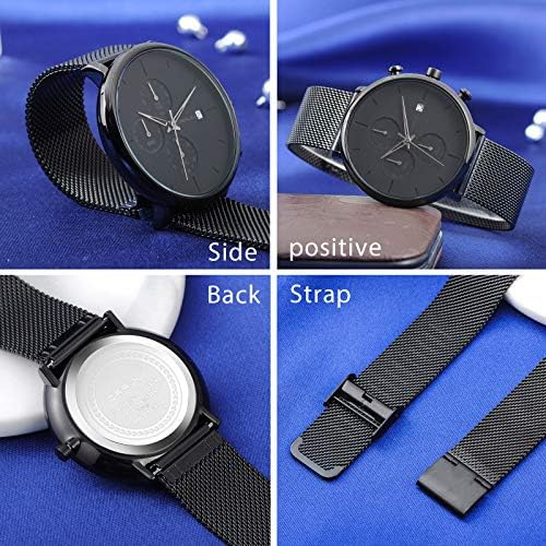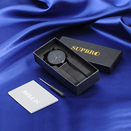 SUPBRO Herren Uhr Männer Edelstahl Wasserdicht Armbanduhr Analog Zifferblatt Business Uhr Datum Ultra Dünne Quarz Schwarz