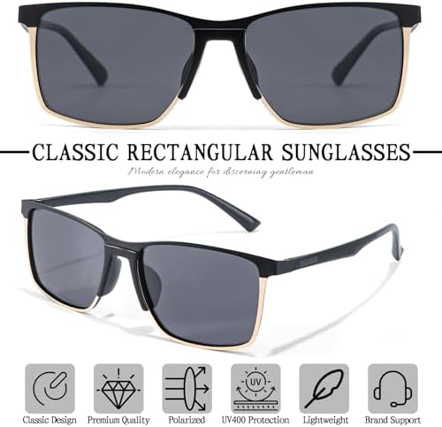 TJUTR Sonnenbrille Herren Polarisiert ultraleichte TR90 Metallrahmen Retro-Stil mit UV400-Schutz Gläsern, 60mm