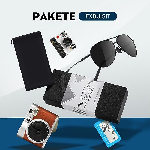 wearPro Sonnenbrille-Herren-Damen-Polarisiert Premium Metallrahmen Sonnenbrillen Unisex mit UV400 Schutz Vintage Schwarz Fahrerbrille